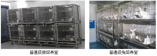 普通环境1300m2。可开展猴、小型猪、比格犬、普通级兔和豚鼠等普通级动物的饲养及实验。